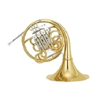 The French horn is a brass instrument made of tubing wrapped into a coil with a flared bell. The double horn in F/B♭ is the horn most often used by players in professional orchestras and bands. A musician who plays a horn is known as a horn player or hornist